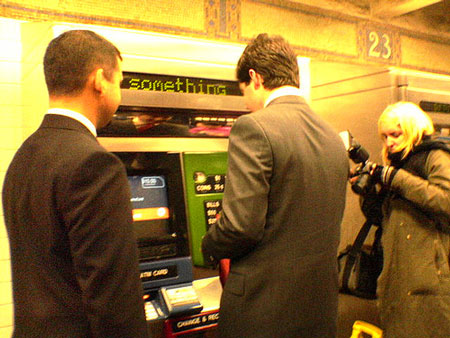 I think the rain drives more people underground. There are a lot more non-regulars on the train this morning. This theory is supported by the huge lines at the Metro Card machines this morning. Clearly there was an influx of people that don’t have cards already.