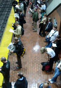 What does this say about a rider? SUBWAYblogger’s completely accurate yet shockingly unscientific reseach shows that people on the front edge of the platform are always high strung individuals. They are the ones that always walk in 5 minutes after the board meeting has begun. This is why they are always looking down the tracks in a panic.