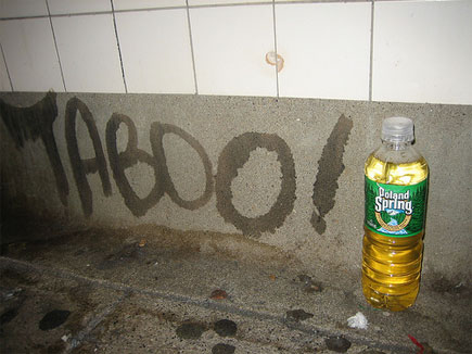 Oh and yeah, the photo is a bottle of pee left on a subway platform.